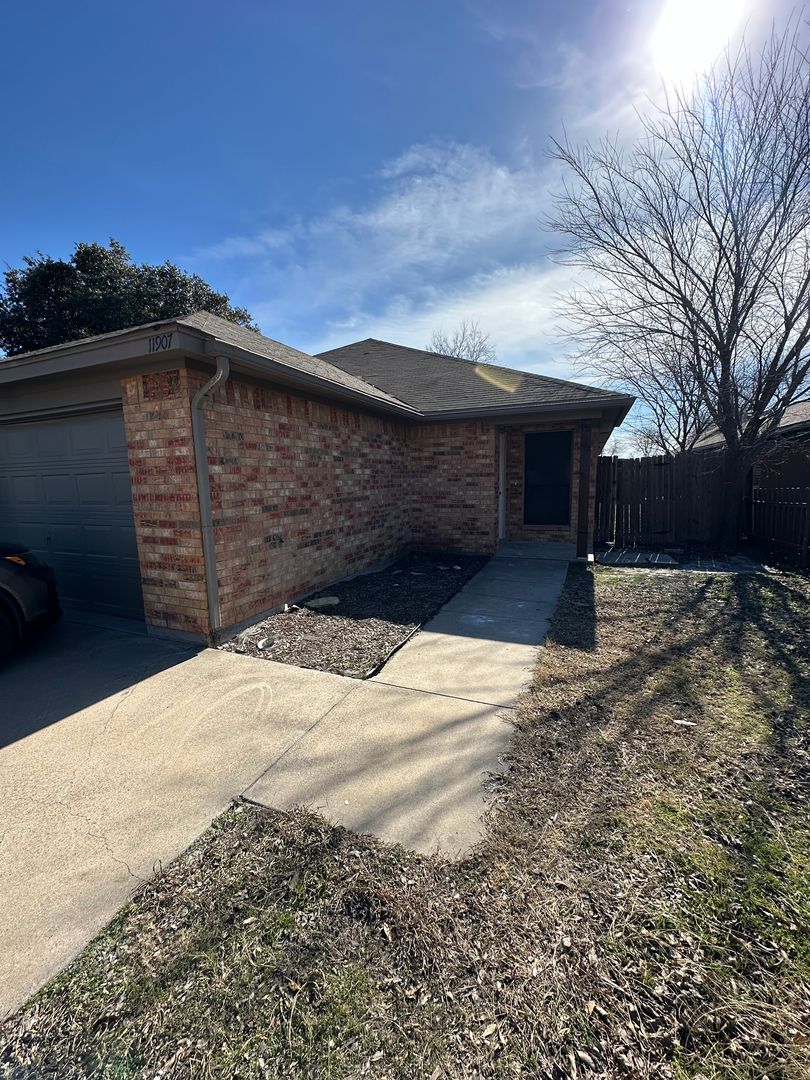 Welcome to the Brick 3 bed 2 bath 1 car garage in a cul de sac Aledo, a stunning duplex located in the vibrant city of Fort Worth, TX. This spacious unit boasts three generously sized bedrooms and two full bathrooms, providing ample space for comfortable living. The duplex has been recently upgraded with brand new flooring and new vinyl planking, enhancing its modern appeal. The kitchen is equipped with all new appliances, ready for your culinary adventures. The property also features a fenced backyard, perfect for outdoor relaxation. The duplex is conveniently located in a cul de sac, providing a sense of community. It's also close to shopping centers, parks, and JRB, making your daily commute and weekend activities a breeze. The vaulted ceilings add a touch of elegance and spaciousness to the unit. Experience the perfect blend of comfort, convenience, and style at the Brick 3 bed 2 bath 1 car garage in a cul de sac Aledo.